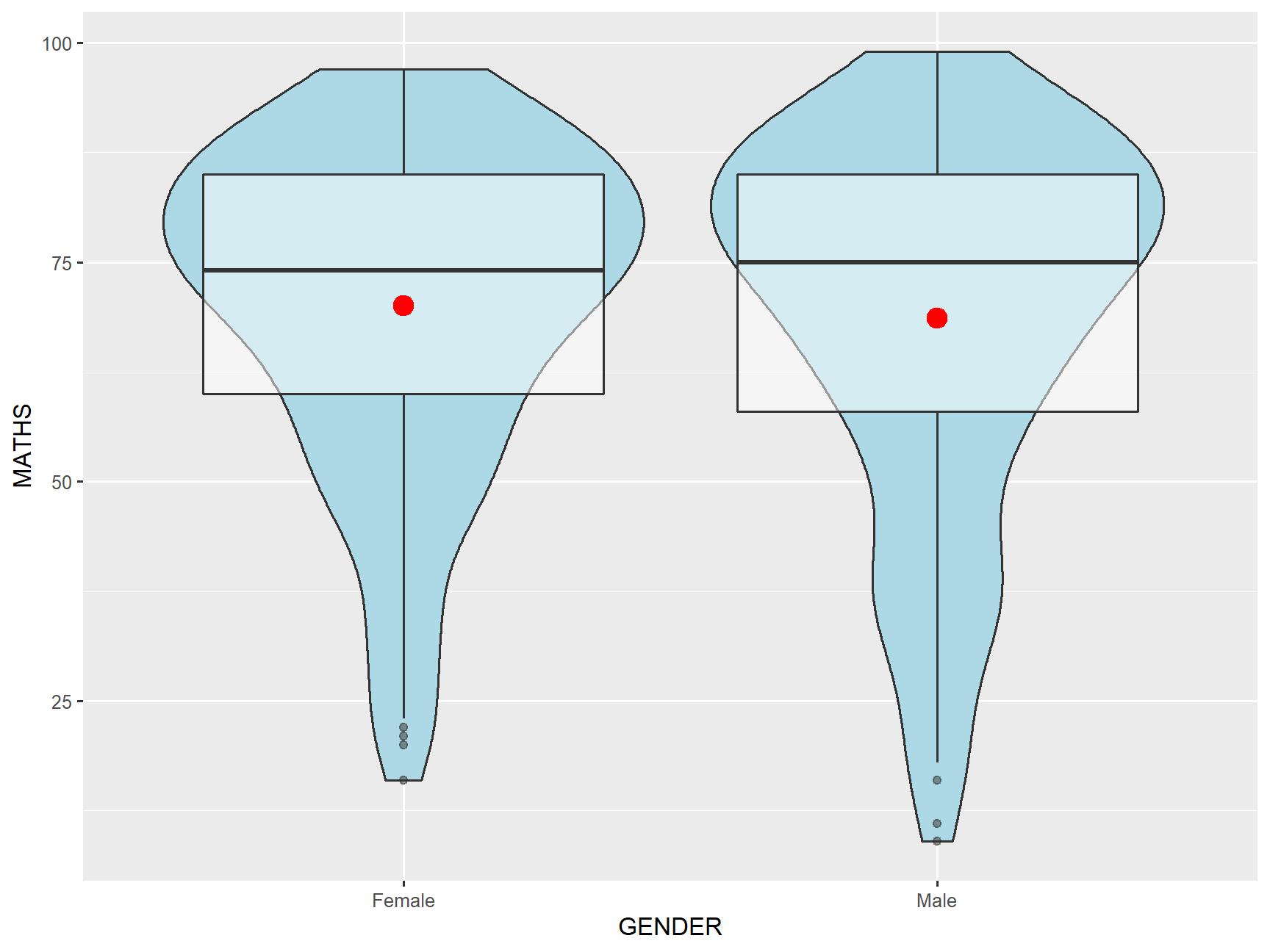 Boxplot revealing the mean and distribution of two samples.