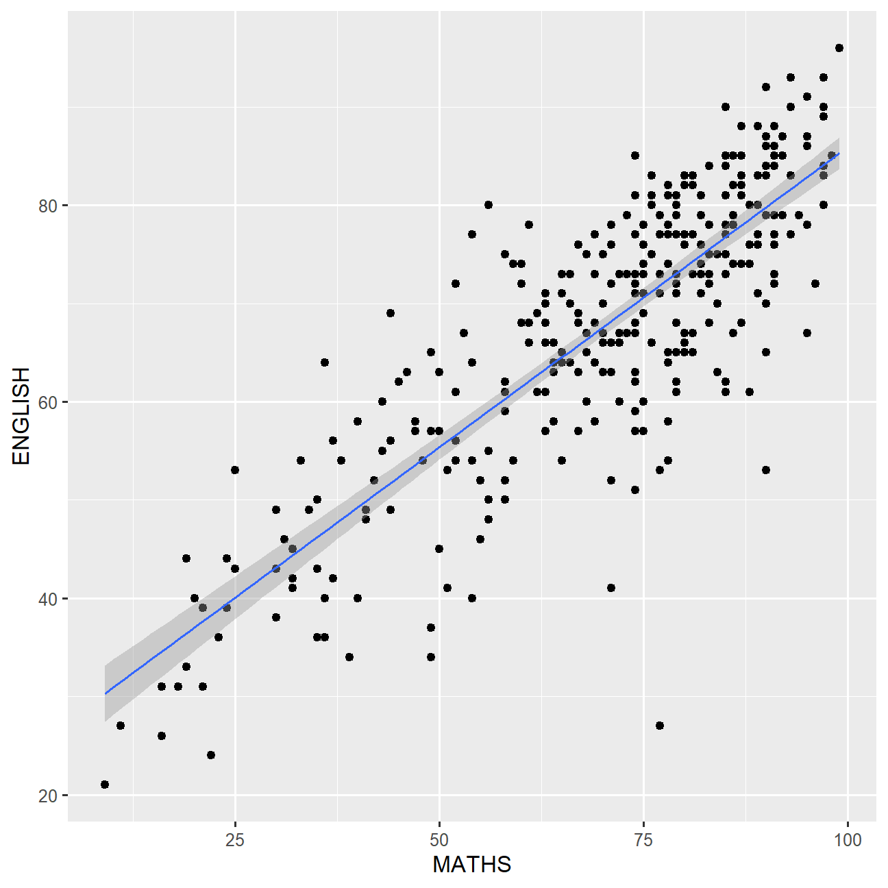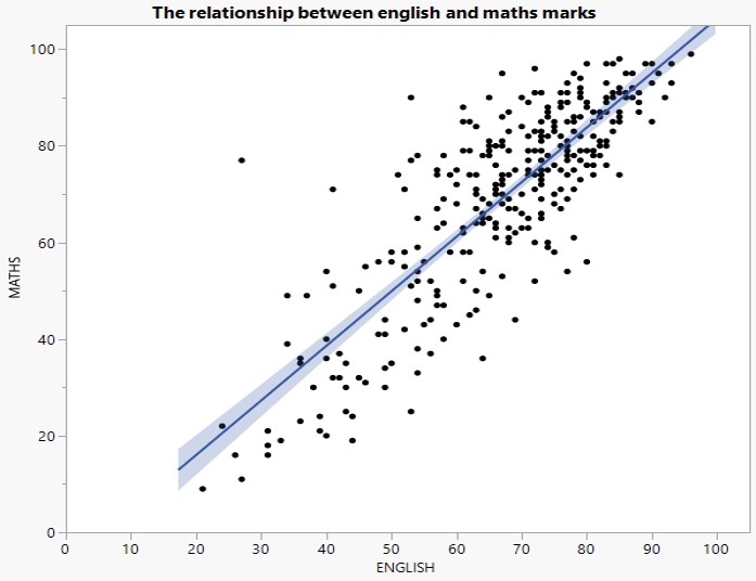Scatter plot showing the relationship between two continuous variables.