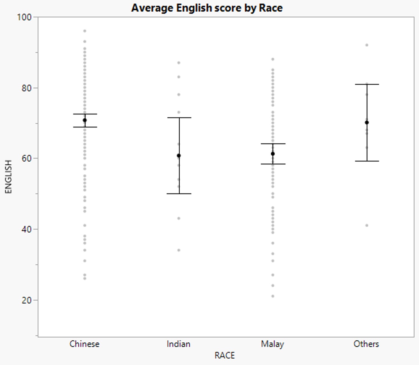 • Each error bar is constructed using a 95% confidence interval of the mean.