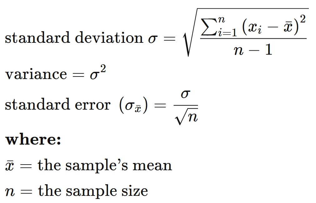 The formulas of standard deviation and standard error