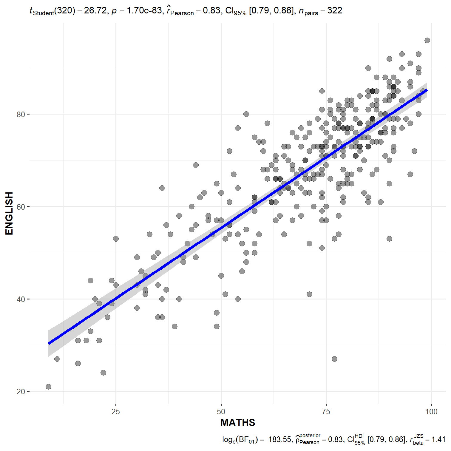 Scatter plot with significant test of correlation.