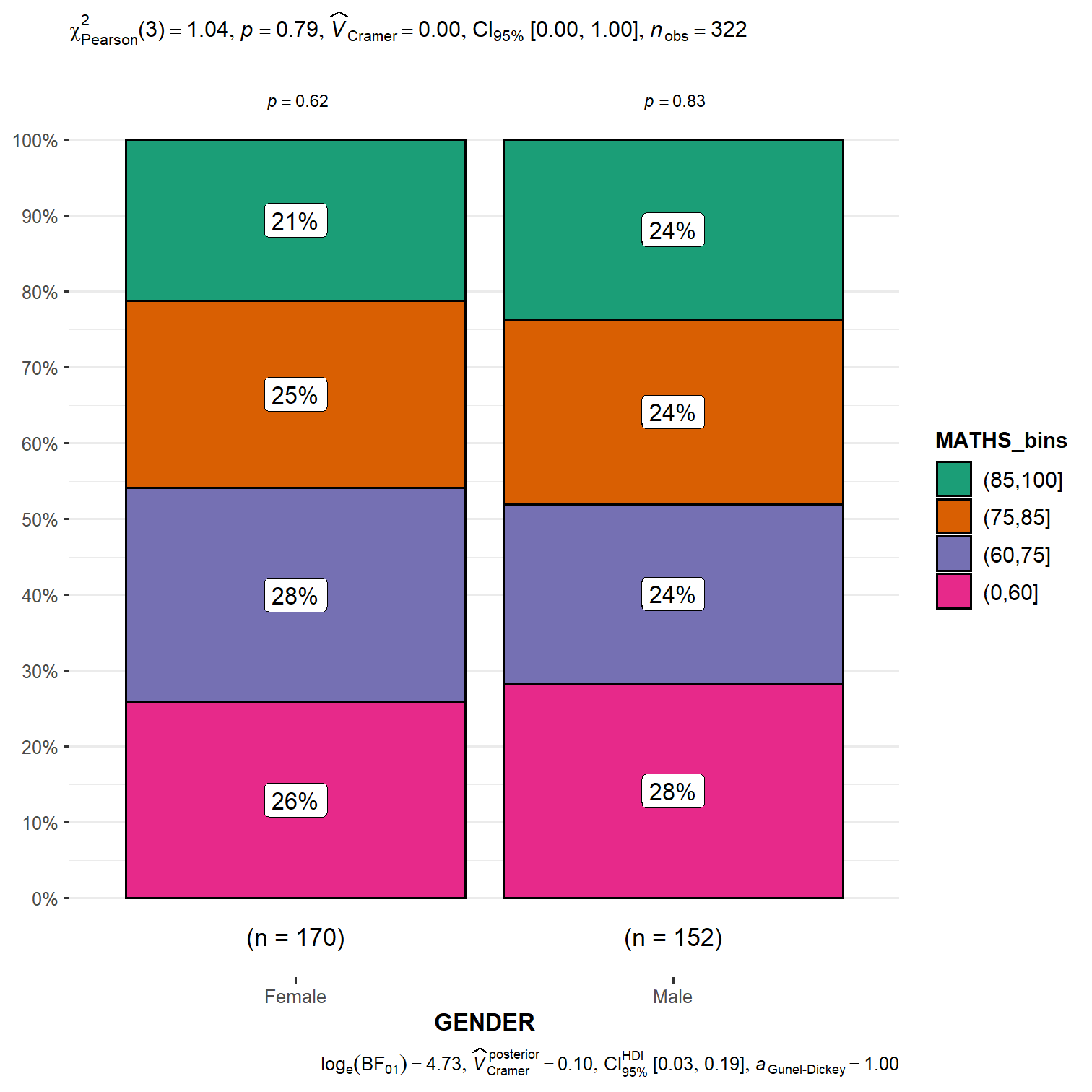 Stacked bar chart with significant test of association.