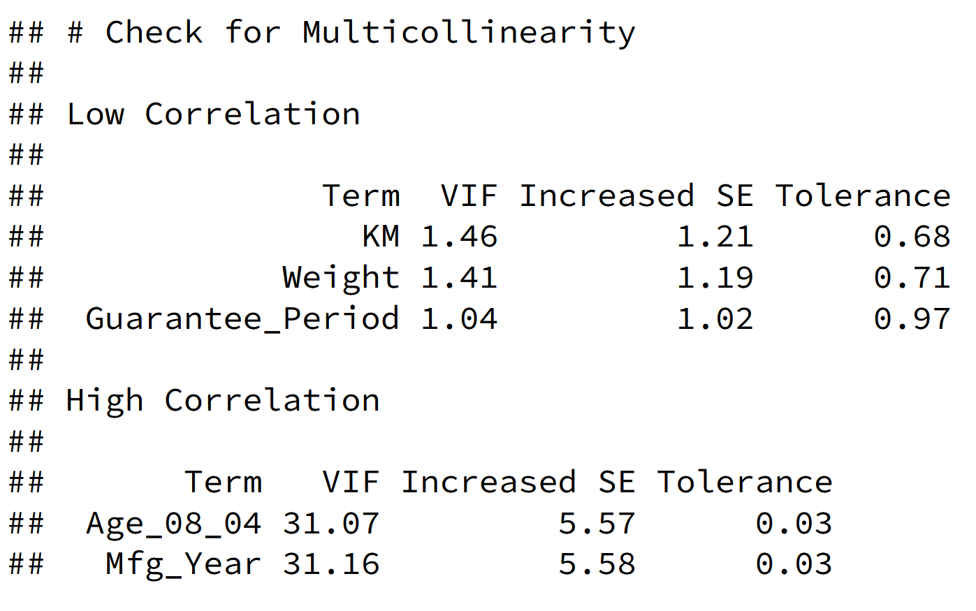 Model Diagnostic: checking for multicolinearity: